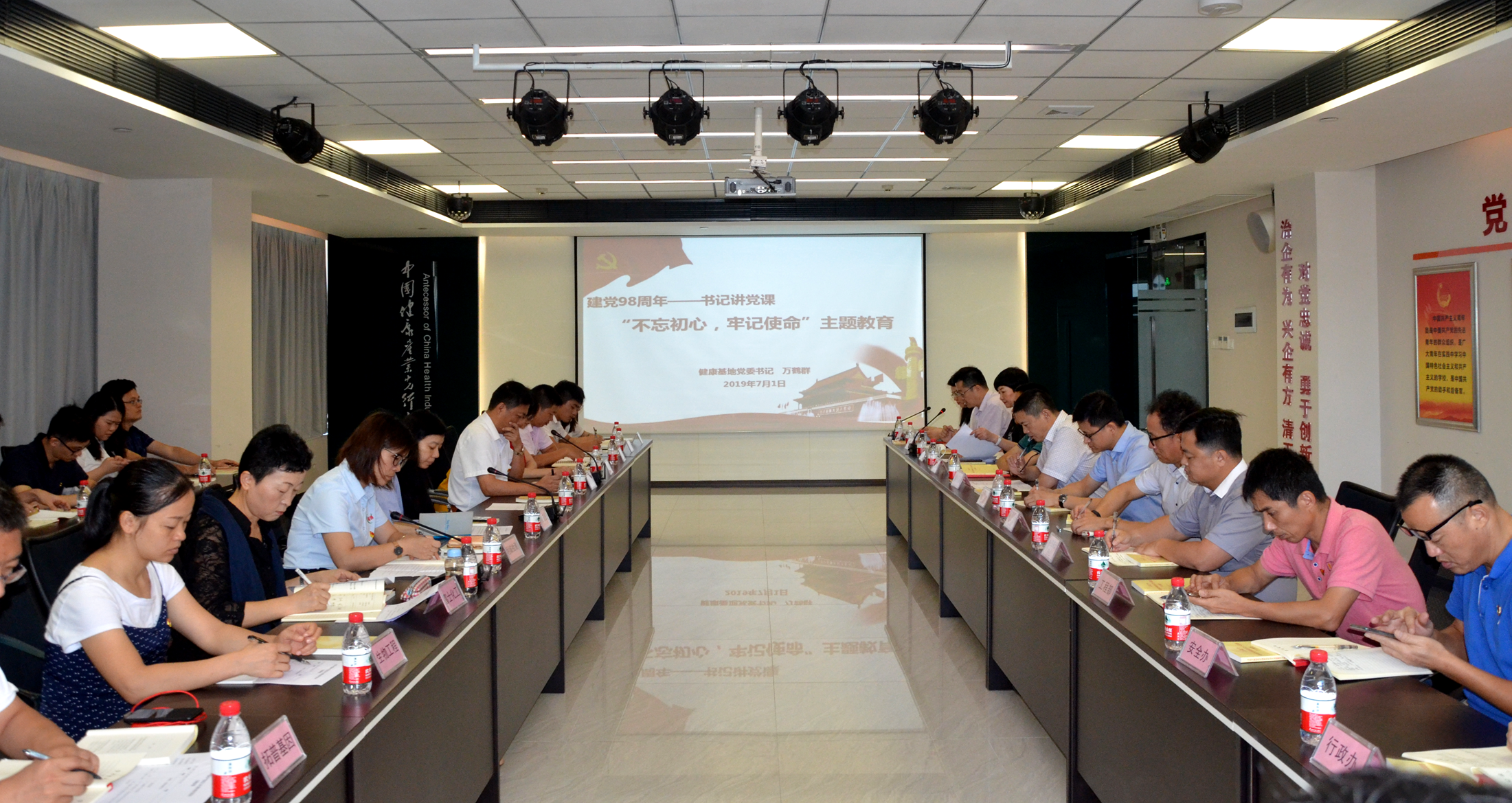 為熱烈慶祝建黨98周年,全面貫徹黨的十九大精神,以習(xí)近平新時代中國特色社會主義思想為指導(dǎo),深入學(xué)習(xí)貫徹習(xí)近平總書記重要講話精神,著力加強廣大黨員思想政治教育,切實提升基層黨組織的組織力,7月1日,健康基地黨委組織開展以“不忘初心,牢記使命”為主題的書記講黨課活動、以“提升組織力”為主題的兩新書記交流活動以及慰問老黨員座談會系列活動。