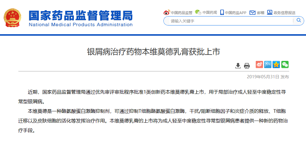 全球首創(chuàng)非激素小分子化學藥本維莫德乳膏獲批上市