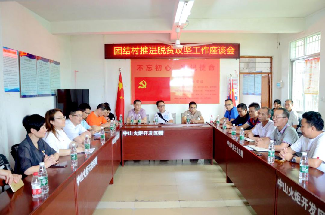 座談會上,先是由健康基地派駐團結(jié)村的第一書記、駐村工作隊隊長林海青主任匯報脫貧攻堅工作情況。他表示:自2016年至今,駐村工作隊緊緊圍繞火炬區(qū)扶貧工作組和公司領(lǐng)導(dǎo)的工作部署,深入開展產(chǎn)業(yè)扶貧項目調(diào)研、貧困戶脫貧意向調(diào)查及推進幫扶項目實施等一系列工作。截止2018年12月,共投入幫扶資金約373萬元,已實現(xiàn)脫貧共47戶152人,分別占建檔立卡貧困戶總戶數(shù)和總?cè)藬?shù)的90.4%和88.89%。完成村道拓寬硬底化工程、團結(jié)小學(xué)配套改造工程、主干道路燈安裝90盞、文化廣場配套建設(shè)2個和垃圾收集點3個等項目。