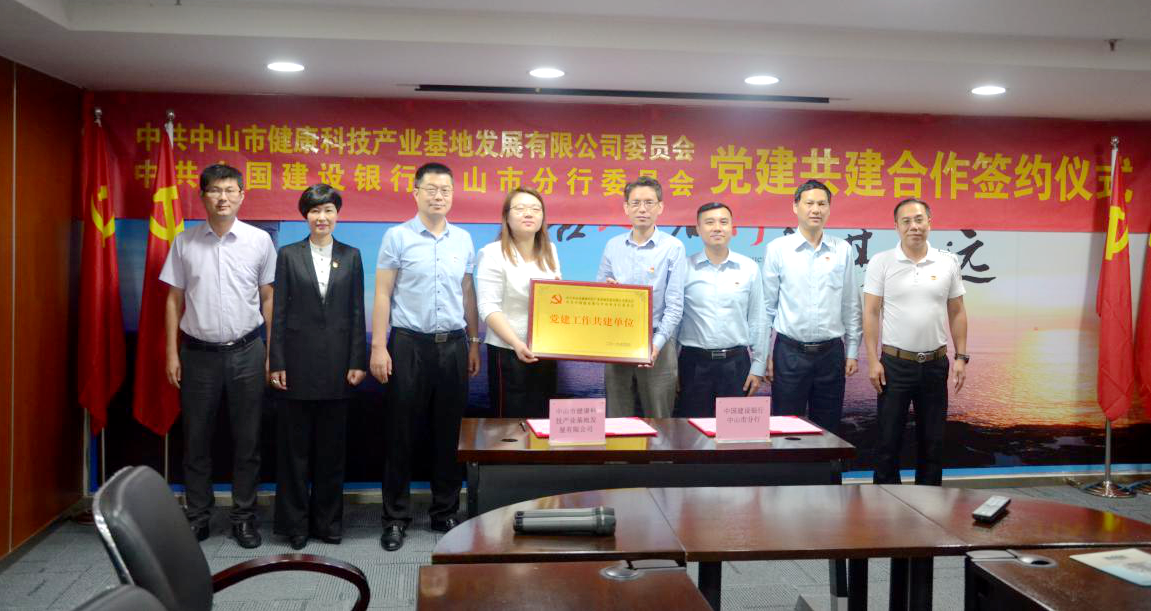 最后,健康基地黨委和建行中山分行黨委共同簽訂黨建共建備忘錄,并頒發(fā)“黨建工作共建單位”牌匾,掀開了銀企黨建聯(lián)合新篇章。標(biāo)志著健康基地和建行中山分行在資源共享、優(yōu)勢互補(bǔ)、共同提高黨建工作新格局方面邁出了新的重要一步。