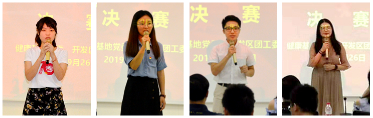 此次演講比賽由國家健康基地黨委、開發(fā)區(qū)團(tuán)工委主辦,健康基地工聯(lián)會(huì)、健康基地兩新黨支部及健康基地團(tuán)委協(xié)辦,是健康基地“喜迎建國70周年”系列活動(dòng)之一。在8月29日舉辦的初賽中,來自園區(qū)10個(gè)企業(yè)的21名選手最終有12名進(jìn)入決賽。