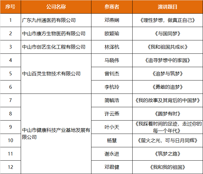 9月26日,由健康基地黨委和火炬開發(fā)區(qū)團(tuán)工委主辦的“我的故事和筑夢(mèng)中國”主題演講比賽決賽圓滿舉辦。來自健康基地公司和園區(qū)企業(yè)共12名選手通過演講的方式,為祖國70周年獻(xiàn)上祝福。