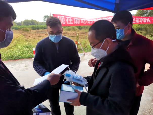 ▲2020年2月3日,火炬區(qū)余石貴組長赴團結(jié)村檢查指導疫情防控工作并向駐村工作隊派發(fā)防護用具。