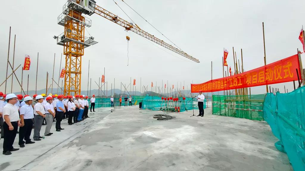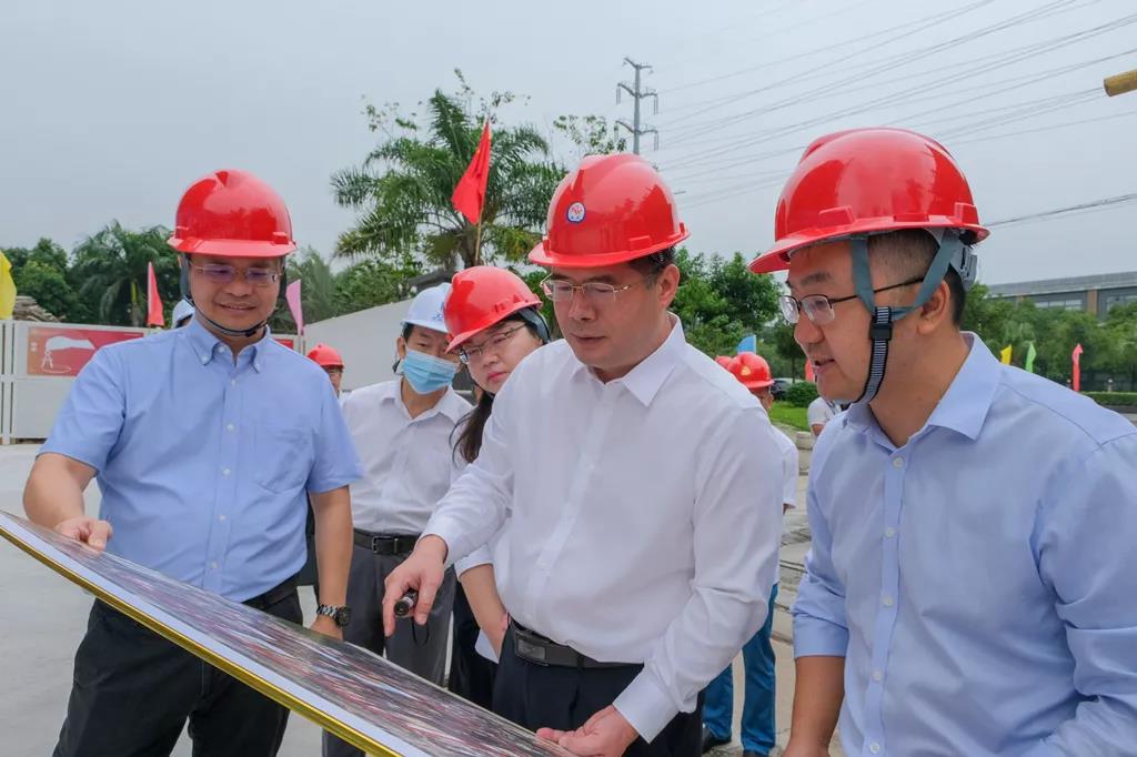 陳文鋒、林諾君、鐘劍、余建華、萬鶴群等為項(xiàng)目封頂澆筑混凝土