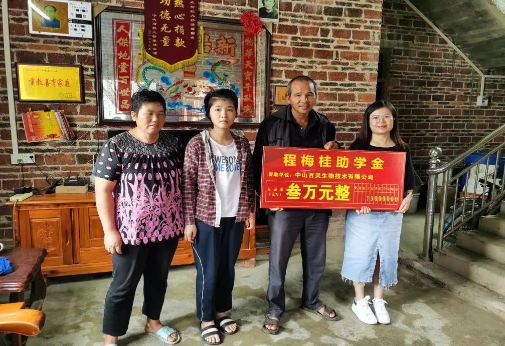 活動中,健康基地集團下屬企業(yè)百靈生物公司來到結對幫扶的貧困戶程石標家中,向程石標的女兒程梅桂送上三年的助學金3萬元,幫助其完成學業(yè)。