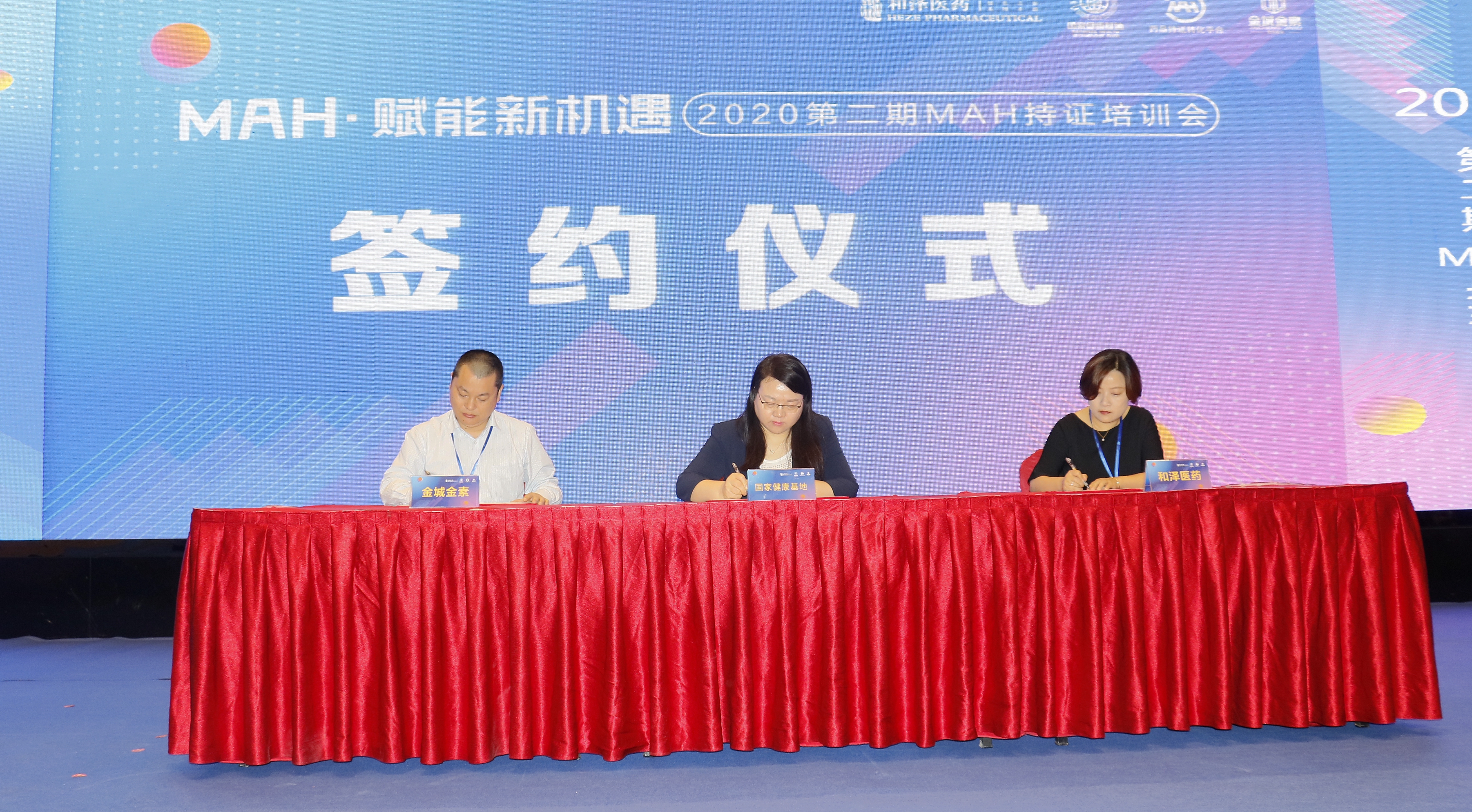 11月7日,由中山市健康基地集團(tuán)有限公司、浙江省藥品上市許可持有人(MAH)轉(zhuǎn)化平臺(tái)共同主辦,浙江和澤醫(yī)藥科技股份有限公司承辦,廣東金城金素制藥有限公司協(xié)辦的2020年第二期MAH持證培訓(xùn)會(huì)在中山市喜來登酒店順利召開。會(huì)上,中山市健康基地集團(tuán)有限公司與浙江和澤醫(yī)藥公司、廣東金城金素醫(yī)藥公司簽署了共建藥品MAH持證平臺(tái)戰(zhàn)略合作協(xié)議。