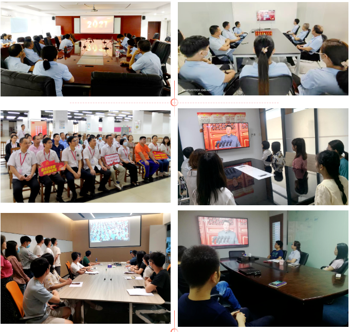 健康基地集團(tuán)園區(qū)黨委組織全體班子及黨員集中收看慶祝大會(huì)直播,感受這激動(dòng)人心的歷史時(shí)刻,全神貫注聆聽習(xí)近平總書記重要講話。園區(qū)兩新黨支部同步組織黨員一同觀看直播。