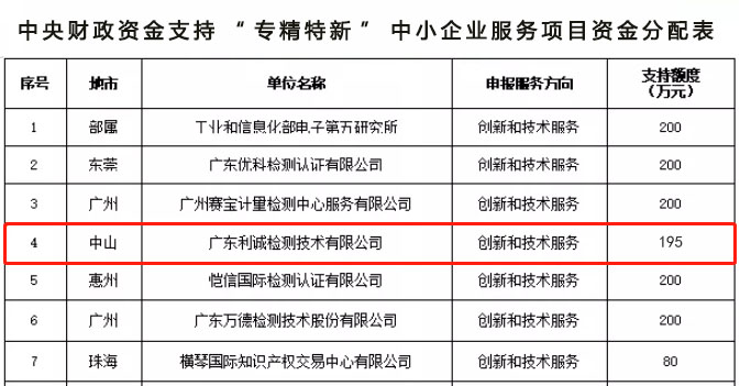 中山唯一!利誠檢測名列2021年中央財政資金支持“專精特新”中小企業(yè)服務(wù)項目名單