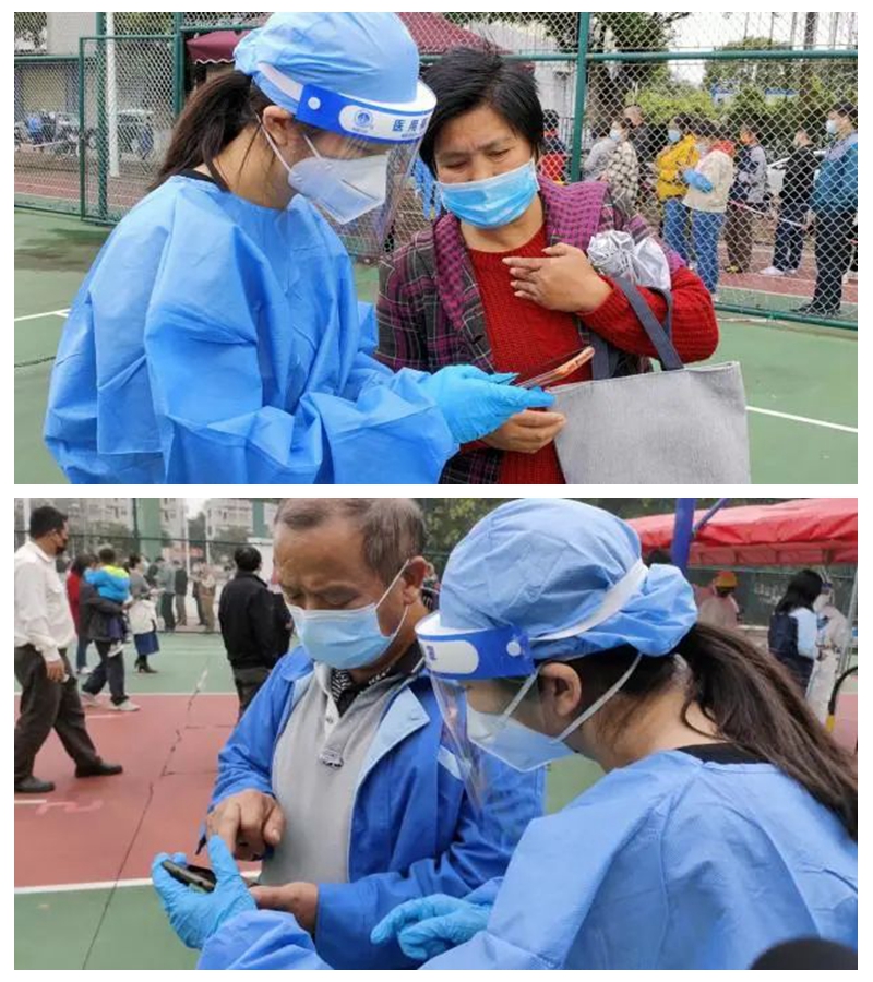 “哎呀,我的葵花碼不會(huì)弄”“我?guī)湍憧匆幌,你的證件號(hào)碼是多少?”3月29日上午,區(qū)域核酸檢測現(xiàn)場,志愿者陳麗華忙著為不會(huì)生成葵花碼的老人操作手機(jī),有時(shí)候身旁還排起2到3人的小隊(duì)等候。面對比較著急的催促,陳麗華總是帶著春風(fēng)般的微笑,耐心回復(fù)。