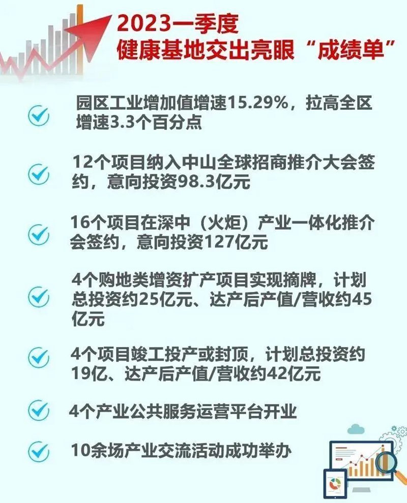 一季度,健康基地簽約落戶(hù)了一批優(yōu)質(zhì)的產(chǎn)業(yè)項(xiàng)目,為壯大中山生物醫(yī)藥產(chǎn)業(yè)艦隊(duì)貢獻(xiàn)園區(qū)力量。其中,3月30日,在2023年中山全球招商推介大會(huì)暨第十屆中山人才節(jié)上,健康基地共有12個(gè)簽約項(xiàng)目、投資總額達(dá)98.3億元,其中2個(gè)項(xiàng)目作為重大項(xiàng)目上臺(tái)簽約,涉及現(xiàn)代中成藥生產(chǎn)基地、醫(yī)藥和醫(yī)療器械CDMO平臺(tái)、小分子新藥CRO平臺(tái)、產(chǎn)業(yè)園合作、醫(yī)學(xué)精密醫(yī)療器械研發(fā)生產(chǎn)等細(xì)分領(lǐng)域。3月31日,在深中(火炬)產(chǎn)業(yè)一體化推介會(huì)上,健康基地共有16個(gè)簽約項(xiàng)目,意向投資總額達(dá)127億元,涉及新藥研發(fā)、醫(yī)療器械產(chǎn)業(yè)化基地、醫(yī)療器械CMO平臺(tái)、醫(yī)療器械MAH持證與注冊(cè)服務(wù)平臺(tái)、產(chǎn)業(yè)園合作、股權(quán)投資基金等產(chǎn)業(yè)細(xì)分領(lǐng)域。