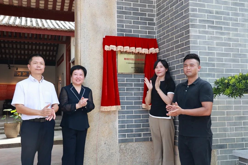 火炬高新區(qū)黨工委委員、管委會(huì)副主任吳楚萍(左二)參加珊洲村史館揭牌儀式。