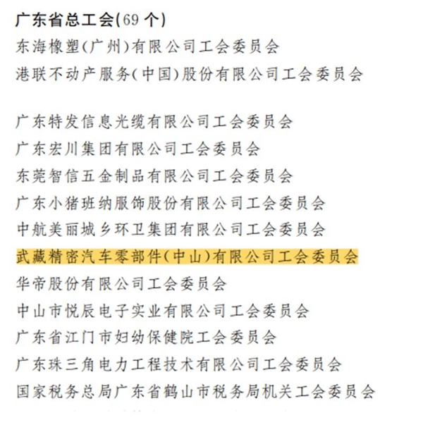 武藏精密汽車零部件(中山)有限公司工會委員會
