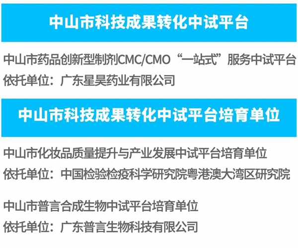 2024年中山市科技成果轉(zhuǎn)化中試平臺(tái)及培育單位認(rèn)定名單(健康基地園區(qū))
