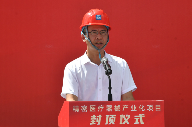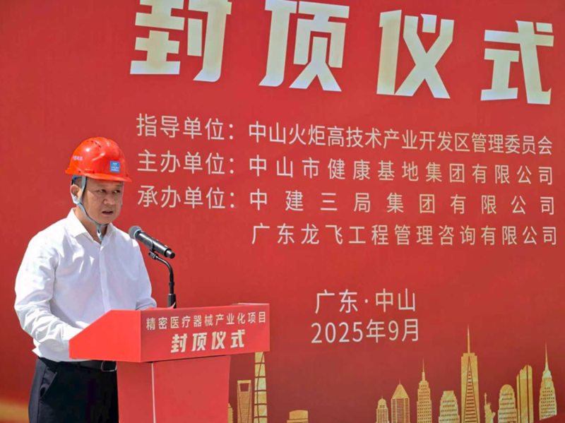 區(qū)黨工委委員、管委會副主任鐘劍在致辭中表示,精密醫(yī)療器械產(chǎn)業(yè)化項目是火炬高新區(qū)推動“三舊”改造和產(chǎn)業(yè)升級的標桿項目。從開工到封頂用時一年,充分展現(xiàn)出“火炬速度”和“中山效率”,體現(xiàn)了健康基地集團作為國企的擔(dān)當。該項目高度契合國家與大灣區(qū)產(chǎn)業(yè)戰(zhàn)略方向,與中山市打造生物醫(yī)藥與健康支柱產(chǎn)業(yè)的部署同頻共振,依托健康基地集團專業(yè)的運營基礎(chǔ),將有力補強我區(qū)生物醫(yī)藥產(chǎn)業(yè)鏈、提升科創(chuàng)能級。他希望各方以“快、好、省、廉”為標準,牢牢守住質(zhì)量安全底線,全力推動項目早竣工、早投產(chǎn)、早見效;鹁娓咝聟^(qū)將持續(xù)優(yōu)化營商環(huán)境,全力做好服務(wù),支持項目早日建成達產(chǎn)、打造產(chǎn)業(yè)新高地,為中山高質(zhì)量發(fā)展貢獻更大力量。