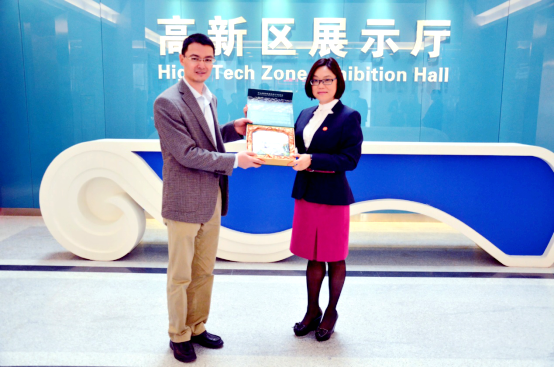 河源市招商局局長(zhǎng)孫宇紅代表市政府向健康基地贈(zèng)送紀(jì)念品