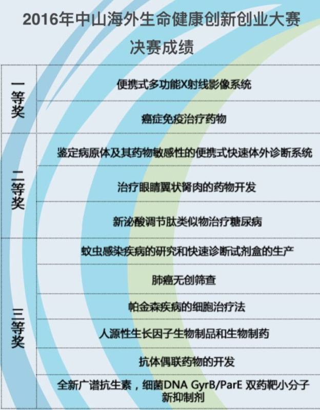26個決賽項目全部來自生命健康產(chǎn)業(yè)領域,包括生物制藥、免疫治療、診斷試劑、醫(yī)療器械、健康管理等專業(yè)方向,這些決賽項目都是通過北美篩選、初賽,歷經(jīng)重重選拔才走到?jīng)Q賽舞臺,項目大多擁有自主知識產(chǎn)權和發(fā)明專利,技術水平達到國際、國內先進水平,項目團隊有強烈創(chuàng)業(yè)愿望,且有意回國并看好在中山創(chuàng)業(yè)發(fā)展的海外創(chuàng)新項目。