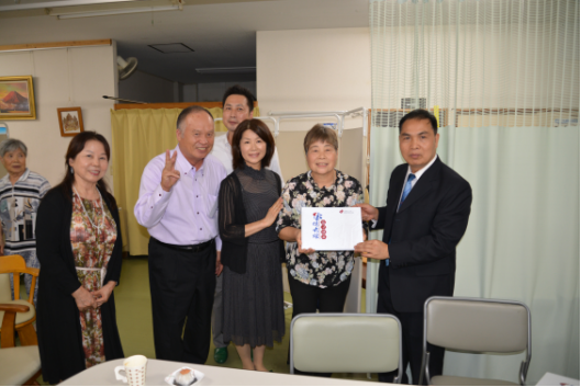 開發(fā)區(qū)黨工委委員黃日初向日本社區(qū)養(yǎng)老機構贈送火炬區(qū)畫冊