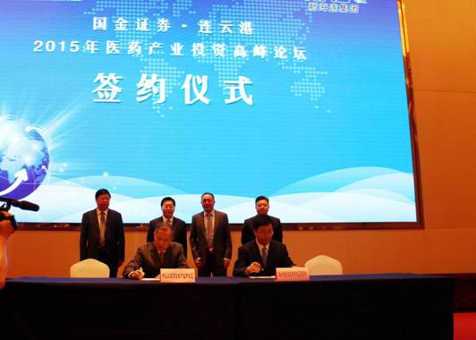 10日 ,考察組一行參加了2015年醫(yī)藥產(chǎn)業(yè)投資高峰論壇。在論壇上,侯奕斌書記與連云港市委常委、連云港開發(fā)區(qū)黨工委書記關(guān)永健就中山火炬開發(fā)區(qū)與連云港開發(fā)區(qū)達成戰(zhàn)略合作進行簽約,兩區(qū)明確將在醫(yī)藥產(chǎn)業(yè)集群、品牌推廣、信息技術(shù)、金融、貿(mào)易等領(lǐng)域展開深入的交流與合作。