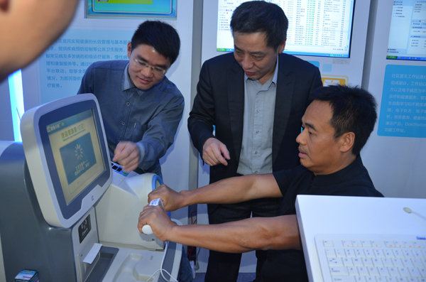 在廣東省健康醫(yī)療信息技術服務區(qū)展廳,雷彪親自體驗了“健康小屋”自動體檢機,并詳細了解了中山市健康醫(yī)療信息技術服務平臺的建設進度。隨后,雷彪?yún)⒂^了海歸博士創(chuàng)新團隊組建的康方生物蛋白抗體研發(fā)實驗室,并了解了高級研發(fā)人員的引進情況,寄語團隊人才“要把人留在中山,更要把心留在中山”。